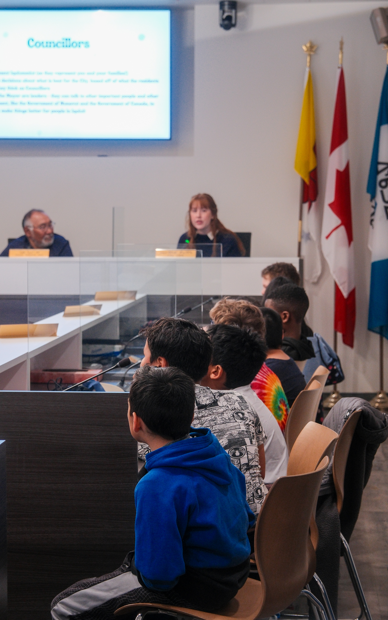 Au cours de cette visite, les élèves ont découvert les rôles et responsabilités du maire et des conseillers municipaux, le déroulement des élections à Iqaluit, ainsi que le processus décisionnel lors des réunions du conseil municipal. Les ateliers ont aussi permis de distinguer les règlements municipaux des autres types de lois, et d’expliquer comment ces règlements sont élaborés, débattus et adoptés.