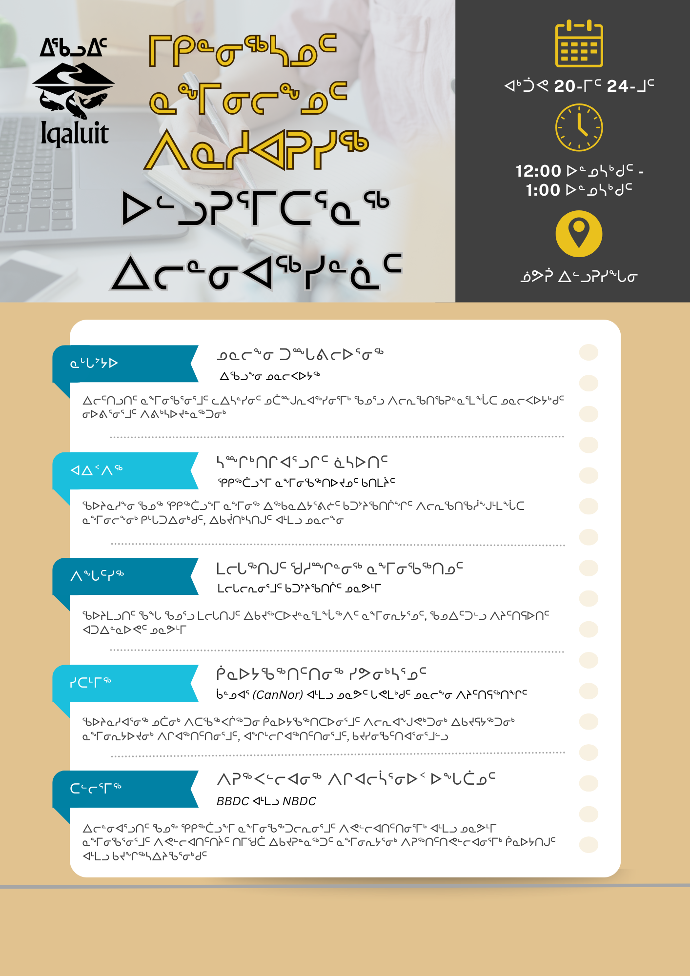 • ᓯᑕᒻᒥᖅ: ᑮᓇᐅᔭᖃᖅᑎᑦᑎᓂᖅ ᓯᕗᓂᒃᓴᓄᑦ – ᑳᓐᓄᐊᕐ (CanNor) ᐊᒻᒪᓗ ᓄᓇᕗᑦ ᒐᕙᒪᖕᒐᓂ ᓄᓇᓕᖕᓂ ᐱᔨᑦᑎᕋᖅᑏᑦ