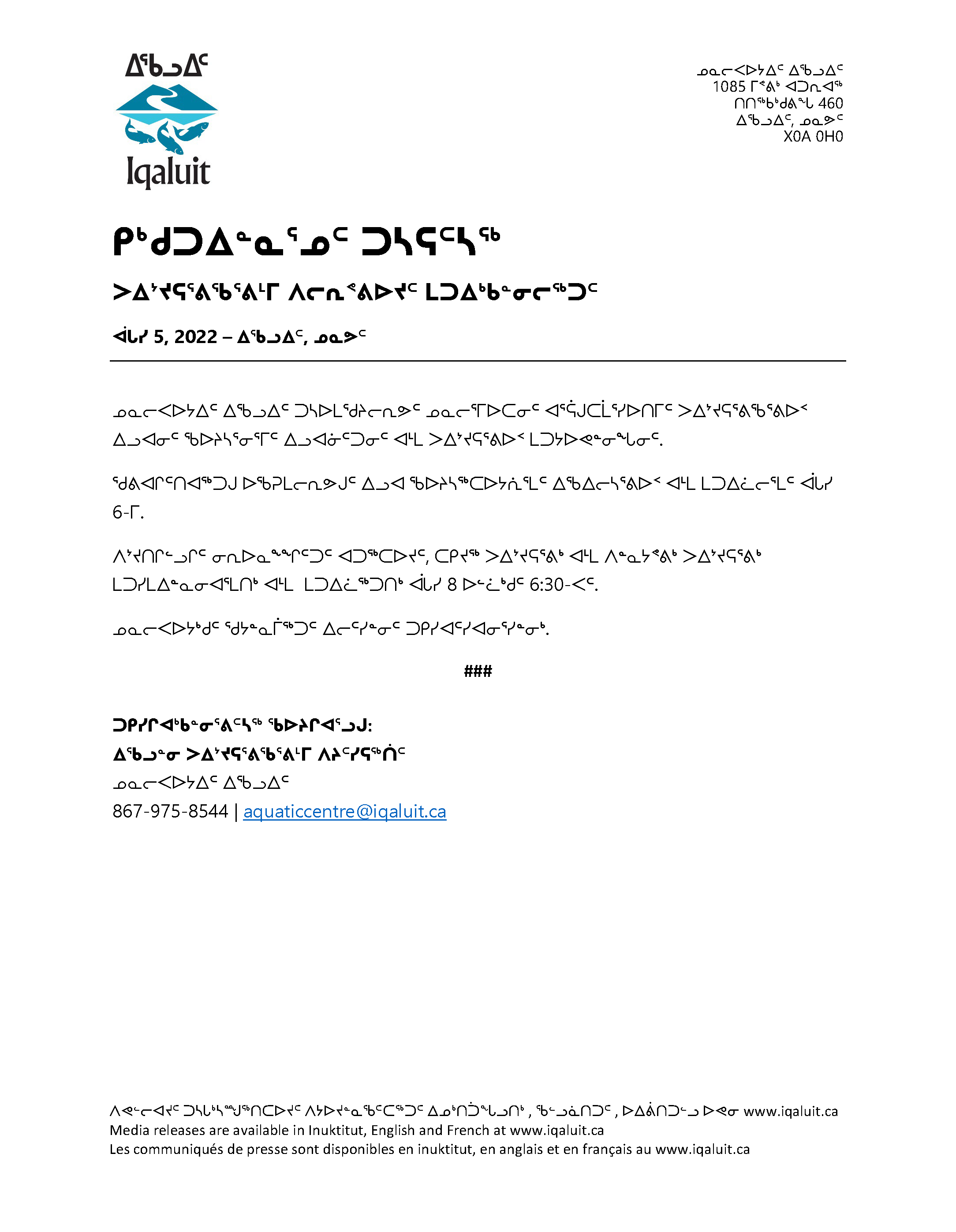 ᐋᒐᓯ 5, 2022 – ᐃᖃᓗᐃᑦ, ᓄᓇᕗᑦ