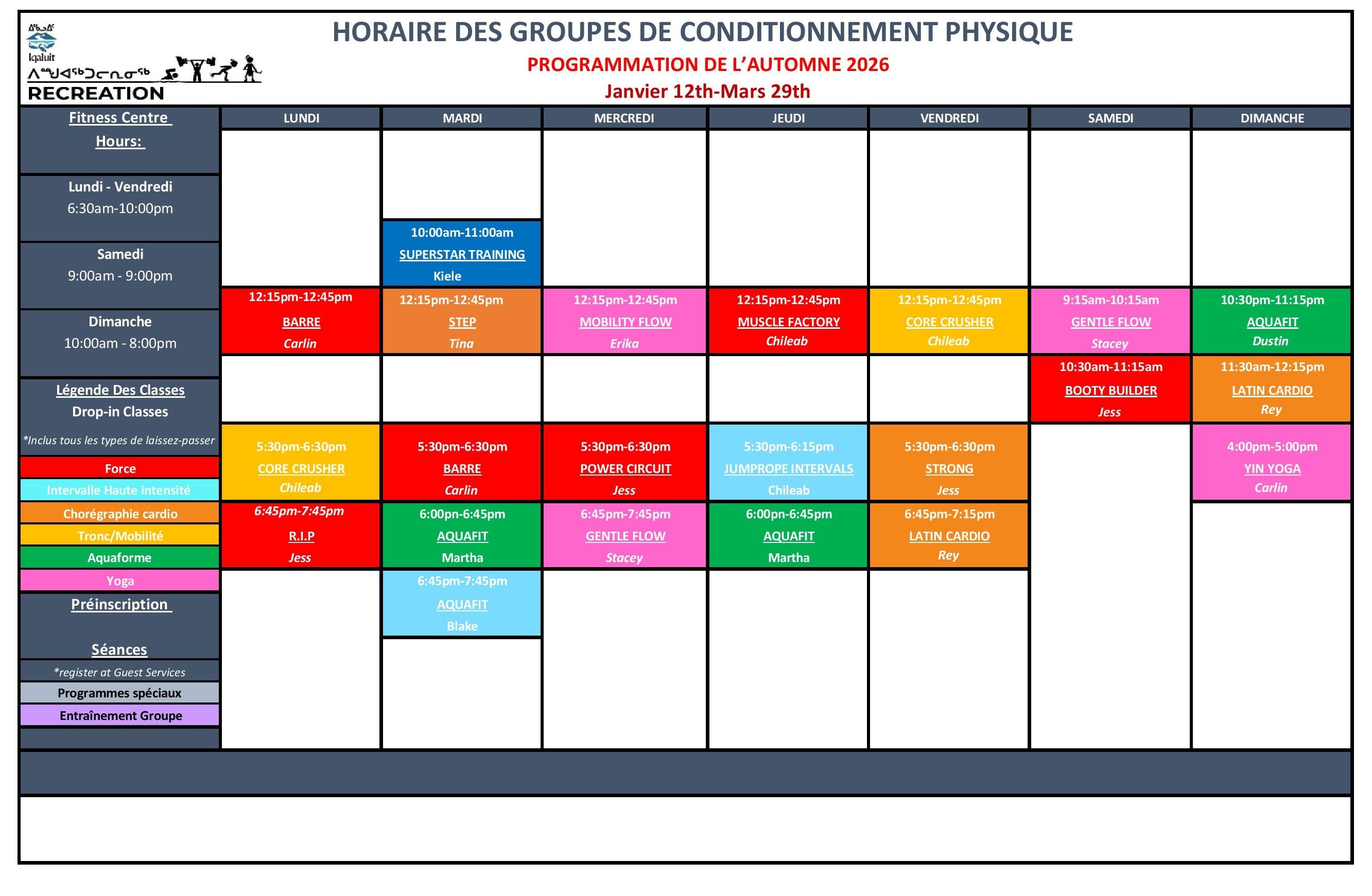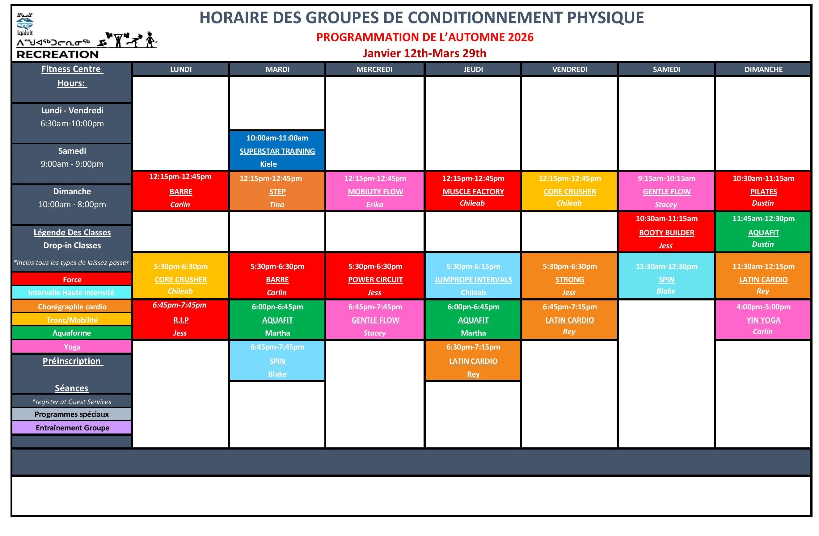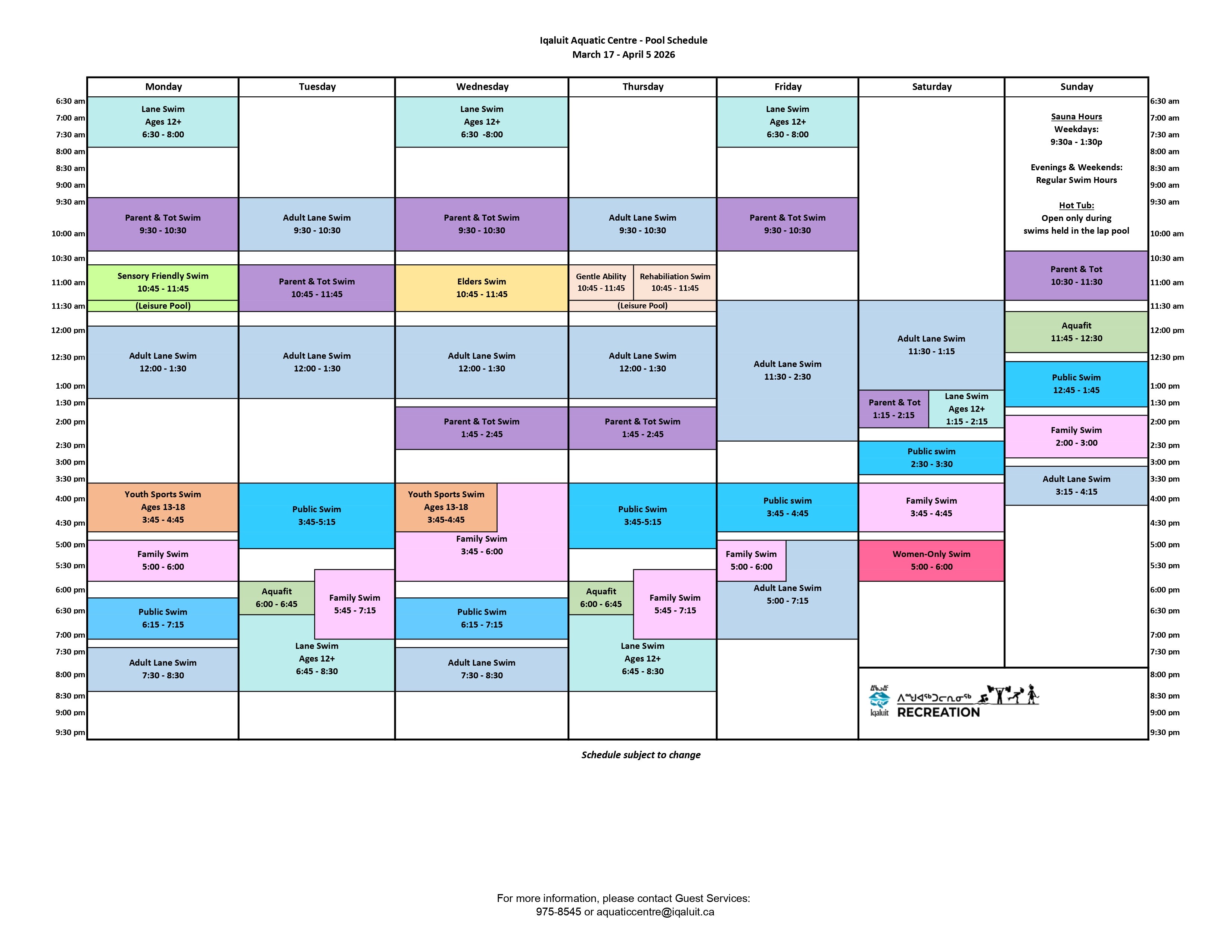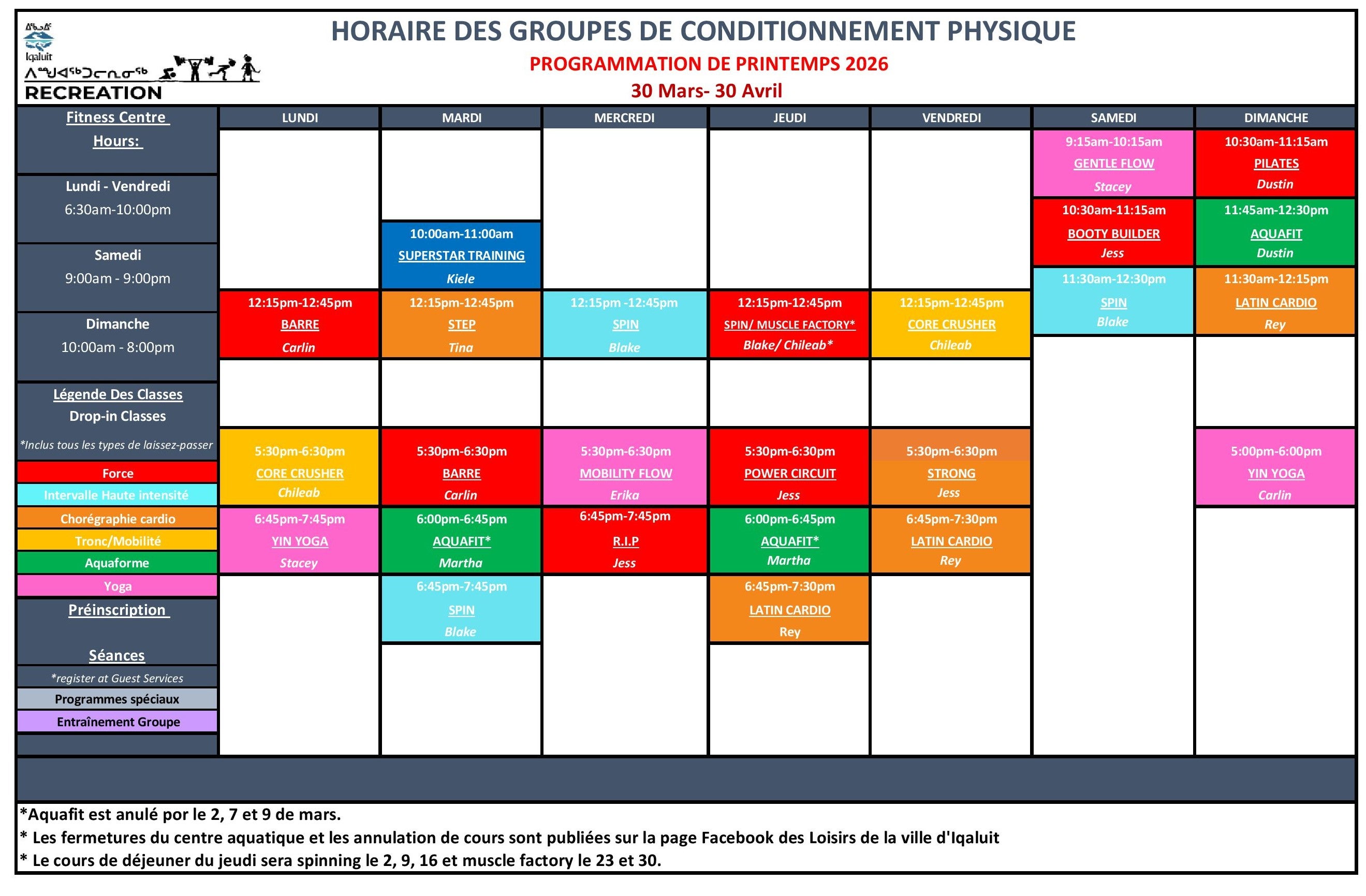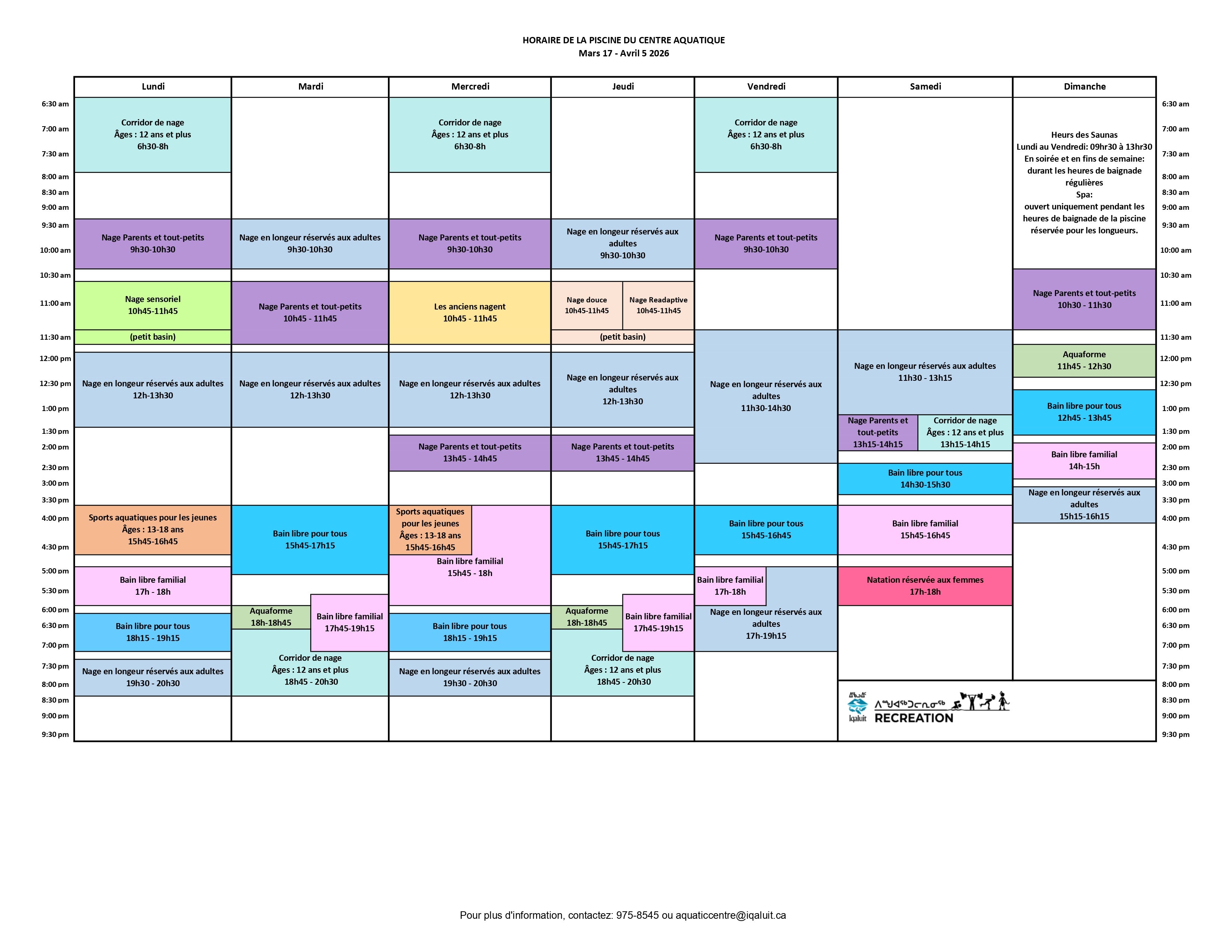 - For information on fees, click here (Pool only Inuktitut and English) or here (Fitness Inuktitut and English)