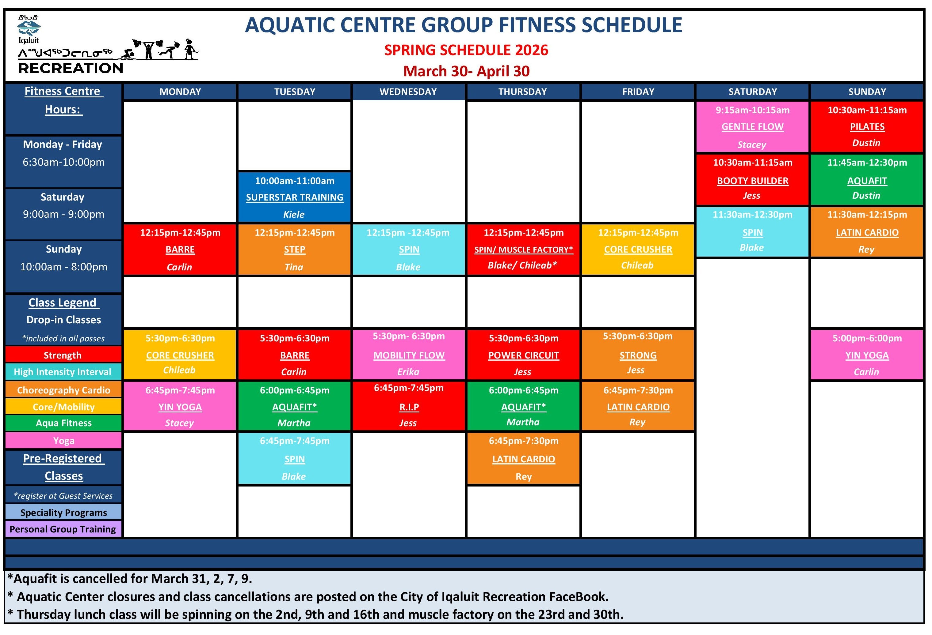 - We are pleased to annouce our Corporate Wellness Program. Call us at Guest Services or email CorporateWellness@iqaluit.ca for more information.